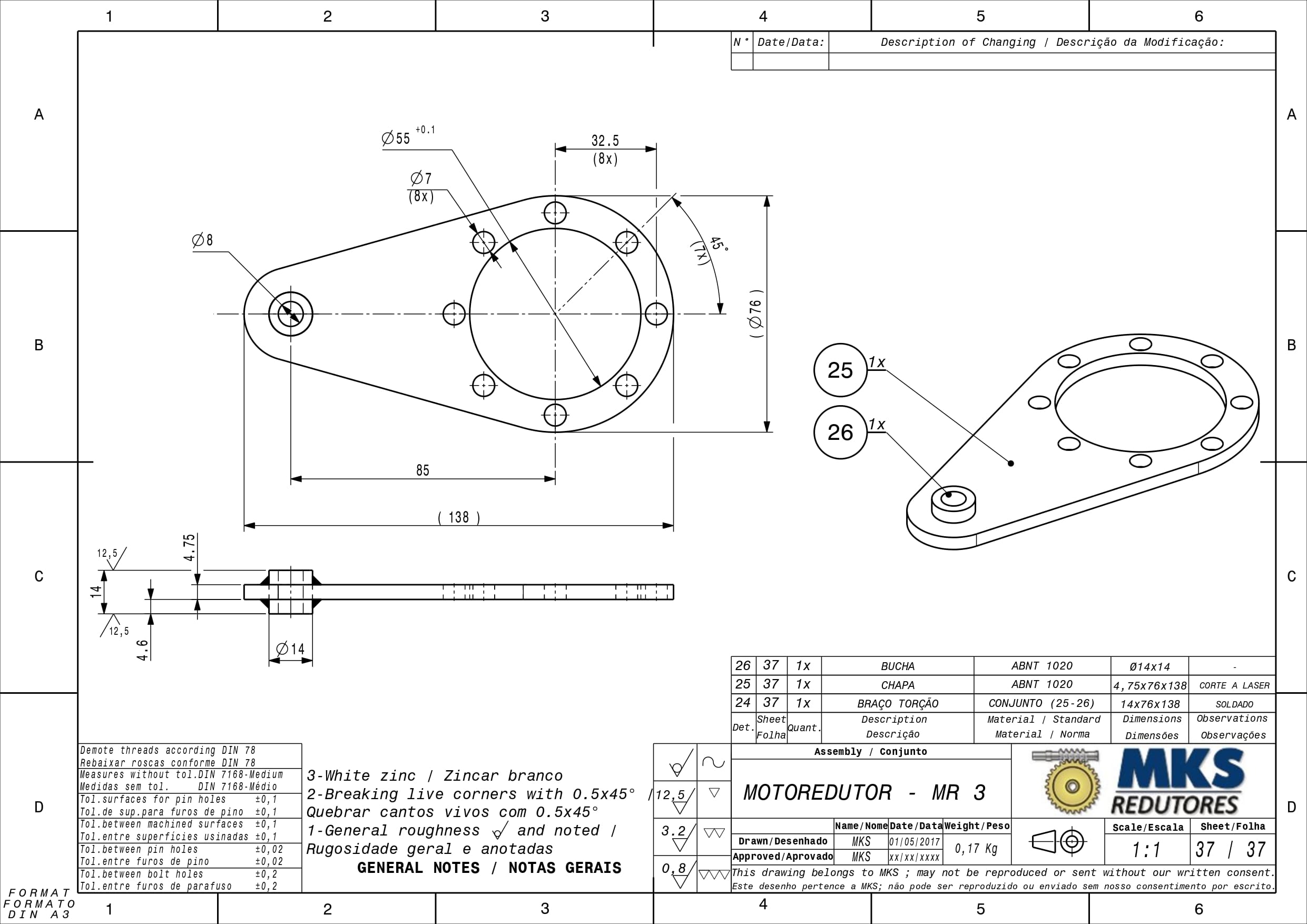Caso necessite do desenho técnico do Redutor Básico, baixe o DWG a seguir.